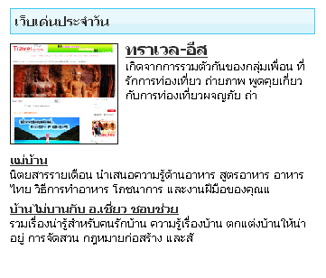 ภาพตัวอย่าง เว็บเด่นประจำวัน ในหน้าแรก