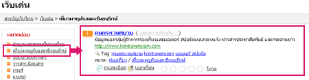 ภาพตัวอย่าง กรณีคลิกเลือกดูเว็บเด่นเฉพาะหมวด